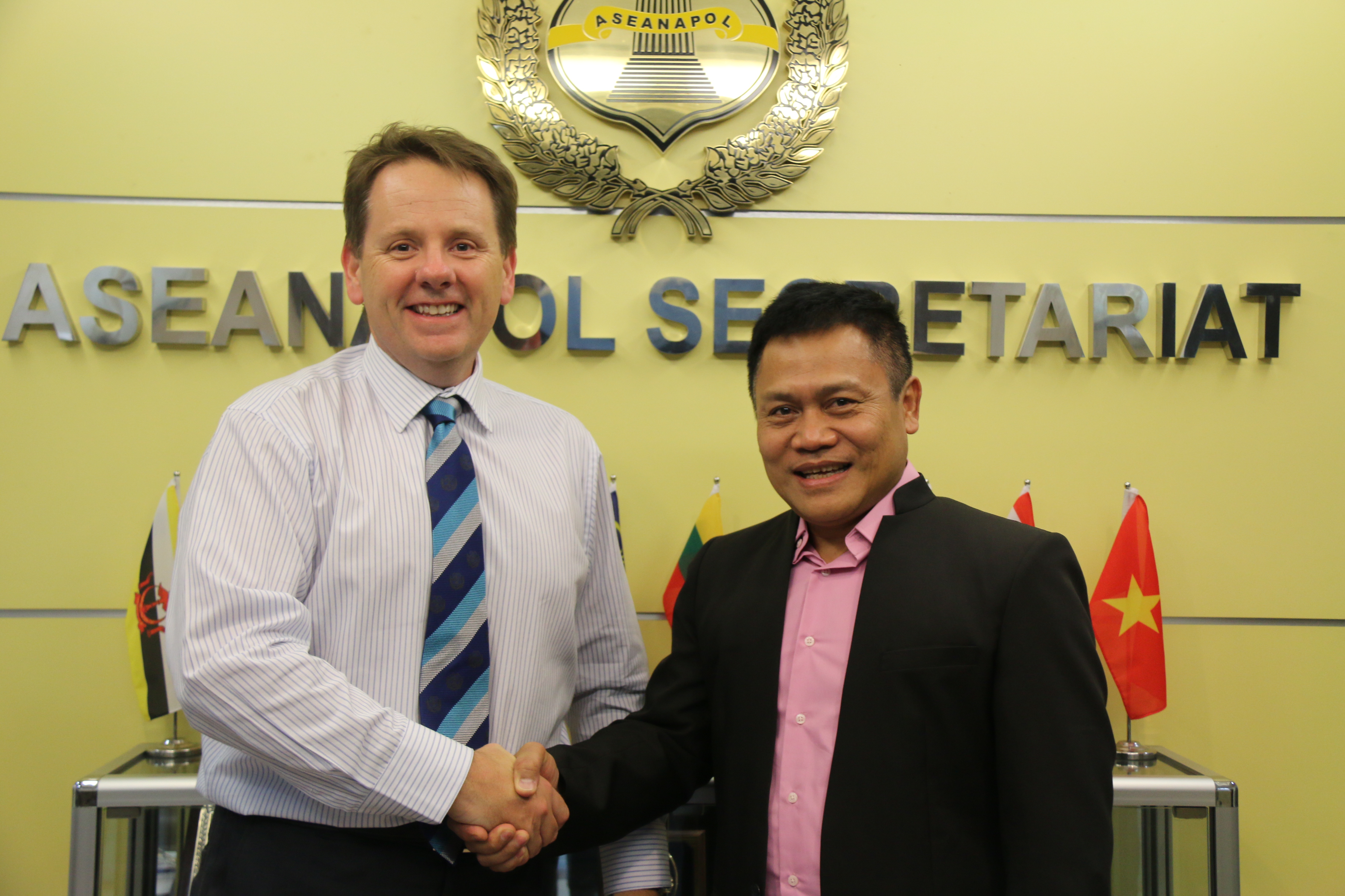 On 13 February 2017, ASEANAPOL Secretariat hosted the first meeting on the proposed conduct of a course on 'Dead Body Management for Police First Responders in Disasters Incident’, supported by The Australia-ASEAN Council and organized jointly with ASEANAPOL, National Institute of Forensic M edicine in Kuala Lumpur (NIFM), the Victorian Institute of Forensic Medicine (VIFM), Asia Pacific Medico-Legal Agencies (APMLA) and the International Committee of the Red Cross (ICRC). The meeting was attended by Dr. Mohd Shah Mahmood, Director National Institute of Forensic Medicine Malaysia (NIFM), Superintendent Police Mohd Saleh B. Mohd Hussain, Asst. Director Operations, Internal Order & Security Dept. Royal Malaysia Police and Mr. Jason Byrnes, Senior Liaison Officer in Kuala Lumpur, from Australian Federal Police. They were welcomed by the Executive Director of ASEANAPOL Secretariat, Brig. Gen. Yohanes Agus Mulyono, Director for Police Services PSSUPT Ferdinand R. P. Bartolome, Director for Plans & Programmes ACP Aidah Bt. Othman and Staff.