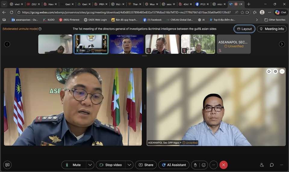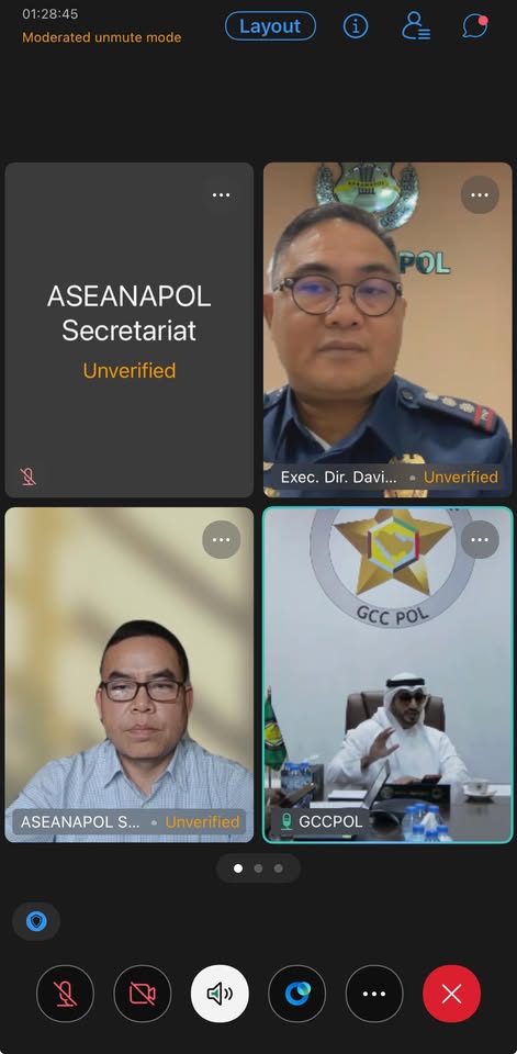 The meeting was led by Colonel Dr. Ahmed Al Kaabi, Advisor to GCCPOL, and Police Colonel David Martinez Vinluan, Executive Director of the ASEANAPOL Secretariat. The session included the incoming Secretariat leadership, Police Colonel Dr. Kong Krissada and Police Colonel Jean Mary Mangahis, ensuring continuity in the strategic partnership between the two regional blocs.