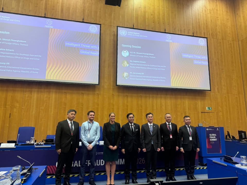On 16 March 2026, Police Senior Colonel Dr. Kongkrissada Kittithiraphong, Executive Director of the ASEANAPOL Secretariat, participated as a keynote speaker in the international conference titled “Intelligent Threats with a Global Reach: The Evolution of Scam Centres and Cybercrime in Southeast Asia”, held at Conference Room M2, UNODC Headquarters, Vienna International Centre.
