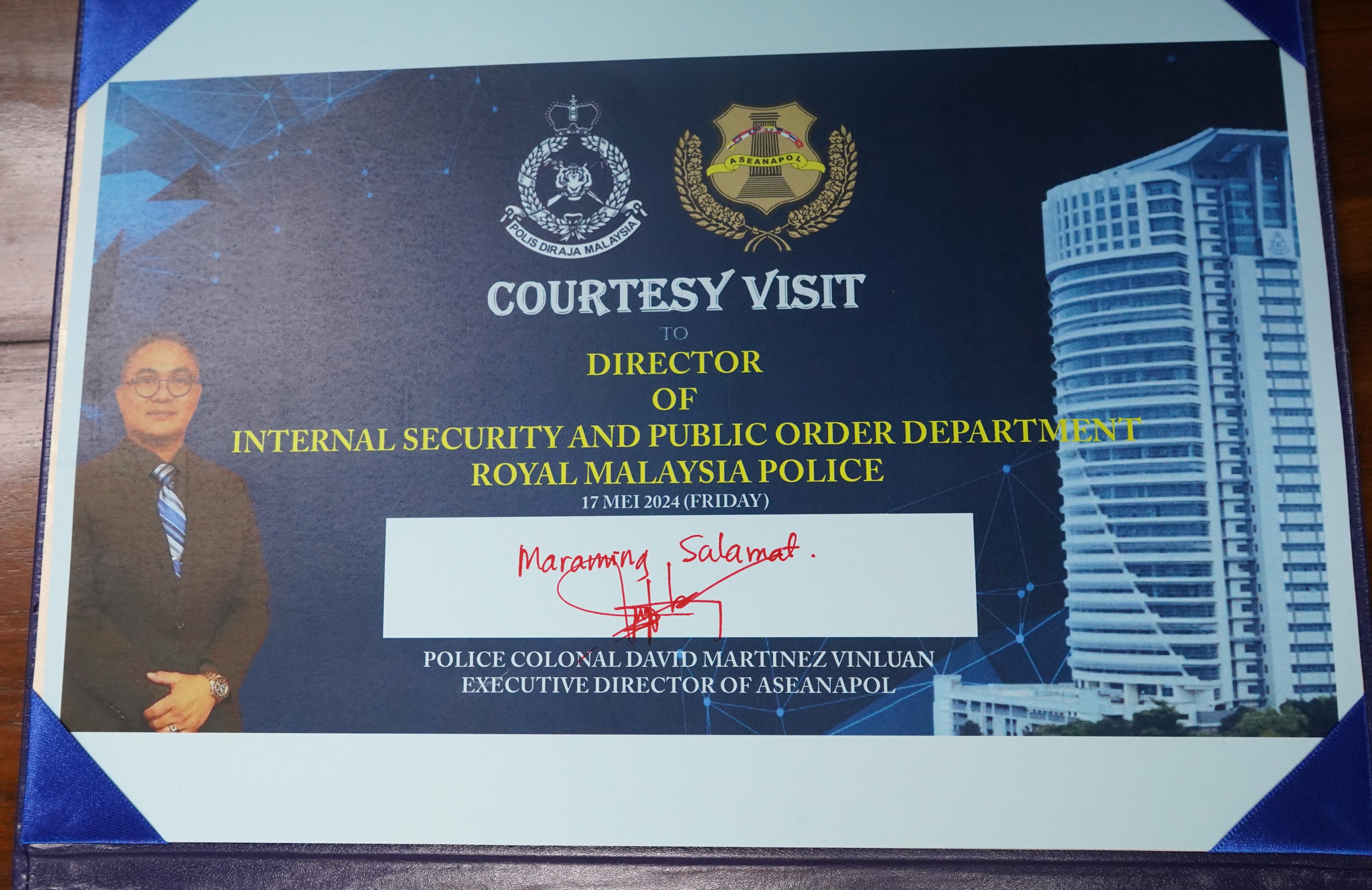 The courtesy visit concluded with a commitment to explore further training opportunities and a customary exchange of gifts. The visit serves as a positive step towards strengthening cooperation between ASEANAPOL and ISPO, RMP in addressing regional transnational cri me and security challenges.