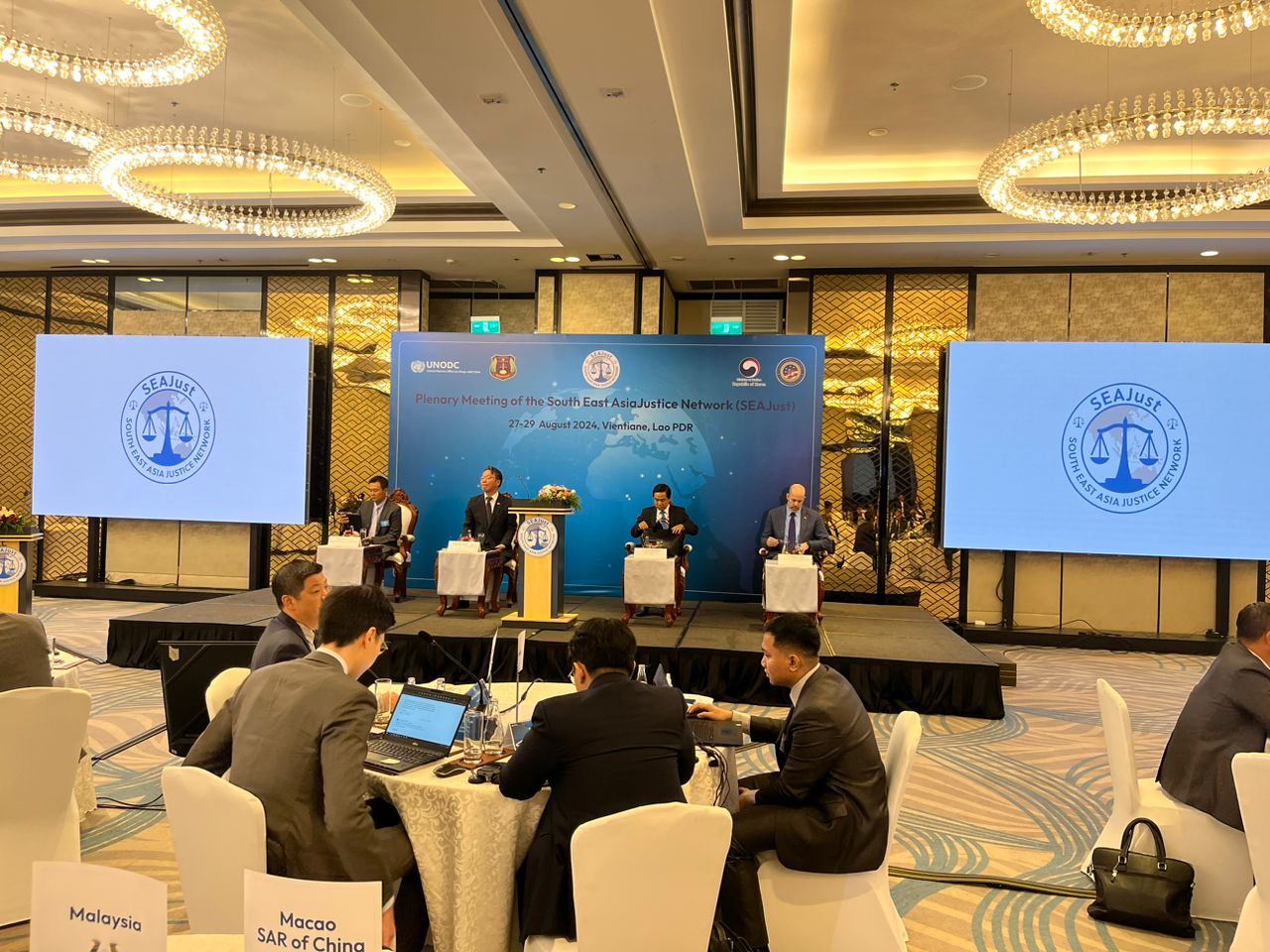 From August 27-29, 2024, in Crowne Plaza Hotel, Vientiane, Lao PDR, the ASEANAPOL Secretariat was represented by RMP Deputy Superintendent of Police (DSP) Suresh Subramaniam, Plans and Programmes Officer I, under the supervision of Executive Director David Martinez Vinluan, at the UNODC’s Plenary Meeting of the South East Asia Justice Network (SEAJust). DSP Suresh participated as a panellist in a discussion focused on "Promoting expeditious execution of MLA requests and enhancing cooperation with/between competent authorities."