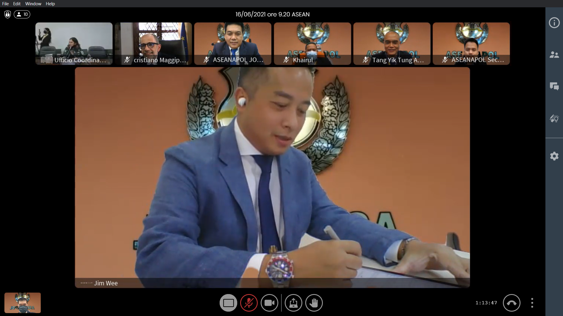 16 June 2021, Signing the Letter of Intent (LoI) between the Asean National Police (ASEANAPOL) and the Public Security Department of the Ministry of the Interior of the Italian Republic.