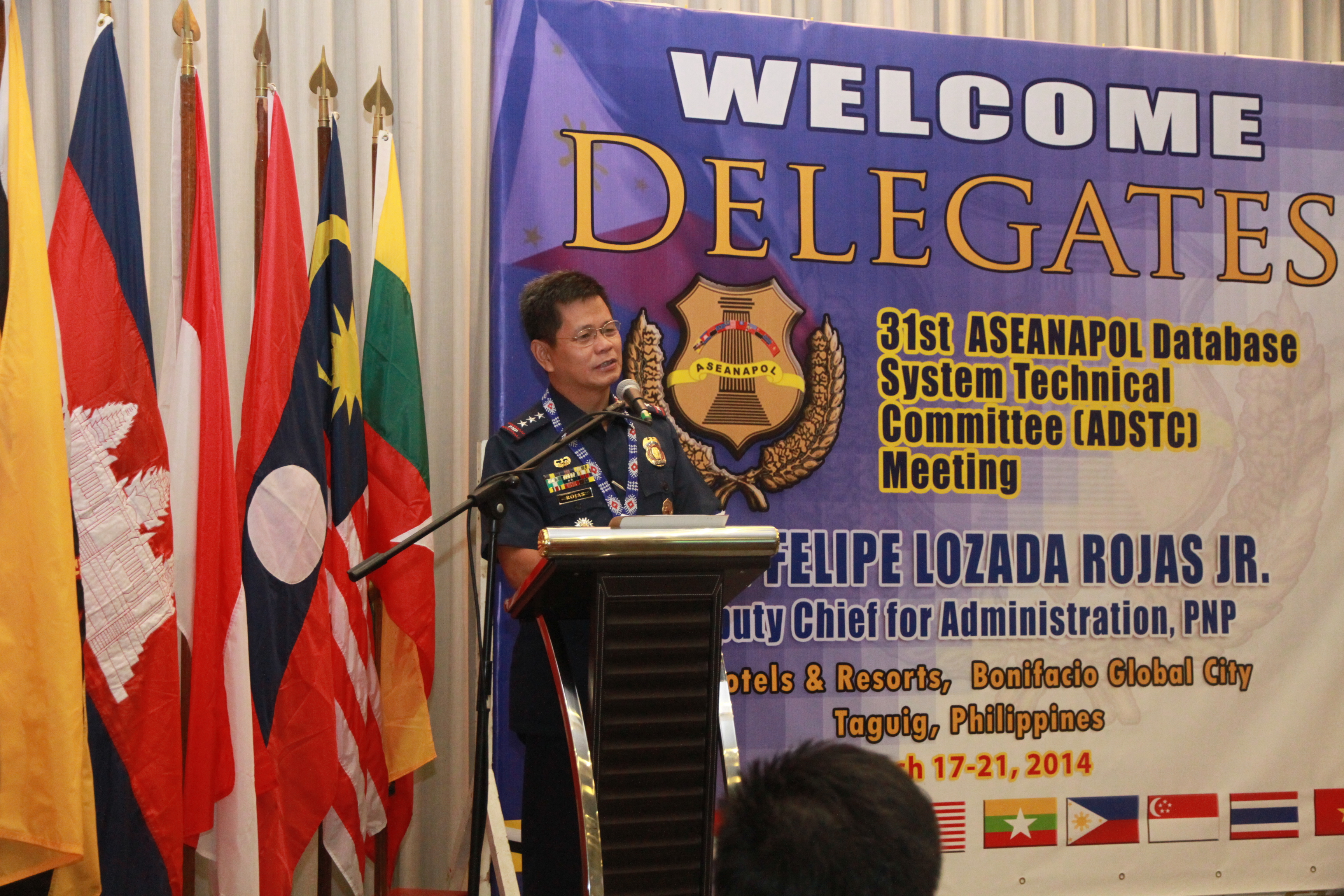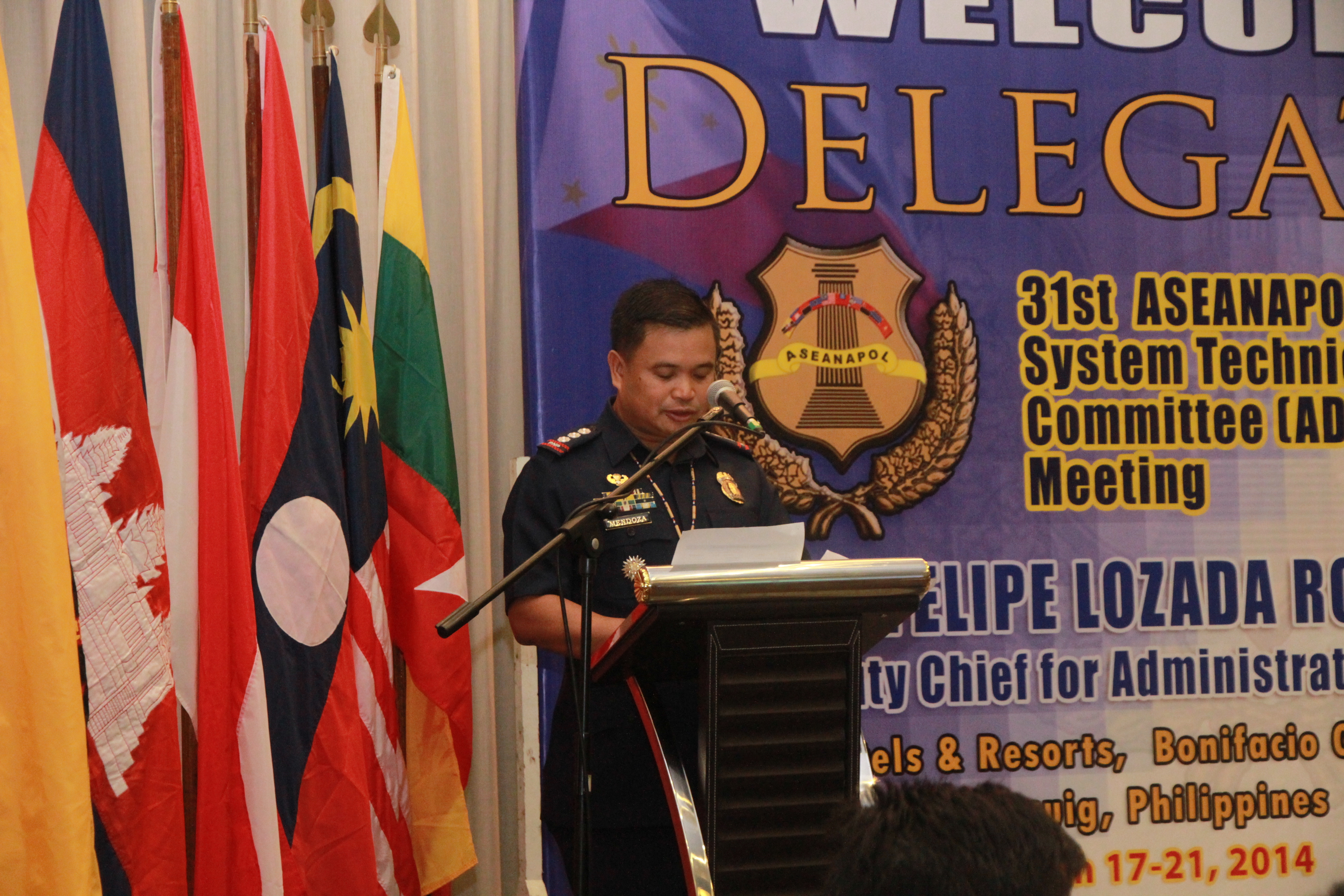 The 31st ASEANAPOL Database Technical Committee Meeting (ADSTC) was successfully held at Bonifacio Global City, Taguig, Philippines from 17th to 21st of March 2014. One the first day of meeting, Director for Intelligence, Philippines National Police (PNP), Police Director Charles Turalba Calima Jr gave his opening remarks. In his speech, he welcomed all participants to the meeting and states the importance of the meeting as one of many efforts exerted to go against criminal activities challenging the ASEAN sovereignty.