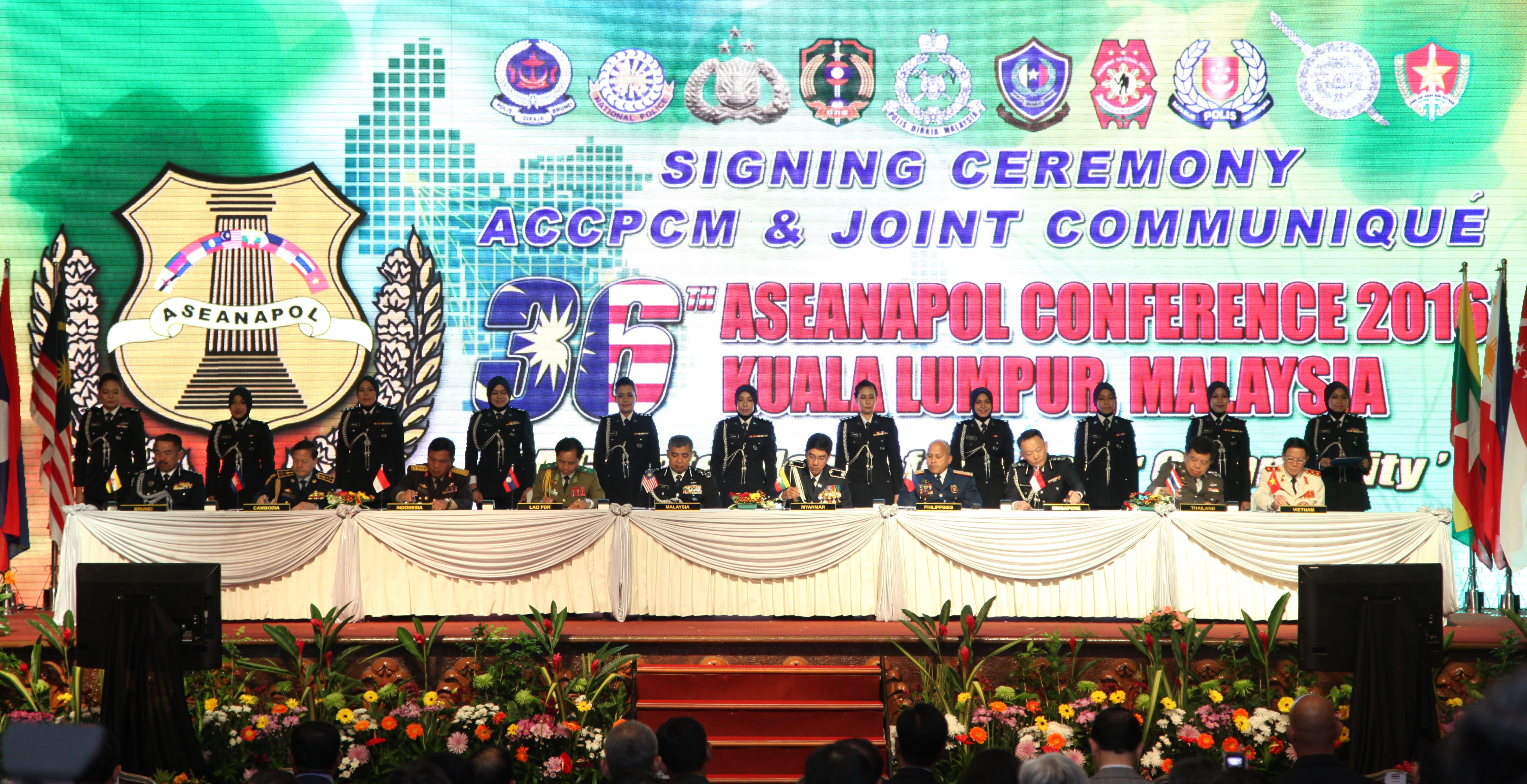 THE SIGNING OF 36TH ASEANAPOL THE JOINT COMMUNIQUE DURING THE CLOSING CEREMONY OF THE 36TH ASEANAPOL CONFERENCE HELD IN KUALA LUMPUR, MALAYSIA (28 JULY 2016).